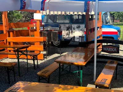 W Rzeszowie, przy Alei Generała Władysława Sikorskiego 311, znajdziesz Polska Kiełbasa Dla Ludu Rzeszowska Nysa – klimatyczny punkt z grillem, który zdobył uznanie klientów. Z oceną 4.8 na 5 w Google (na podstawie 85 opinii), to miejsce przyciąga miłośników prostego, ale autentycznego jedzenia. Specjalnością jest świeża kiełbasa wieprzowo-wołowa pieczona nad otwartym ogniem opalanym drewnem, podawana w chrupiącej bułce z dodatkiem chrzanu i ogórków kiszonych. Do tego zimna oranżada, która przywołuje wspomnienia z dawnych lat. Lokalizacja na świeżym powietrzu, w otoczeniu zieleni, podkreśla niepowtarzalny urok miejsca, nawiązujący do peerelowskiej estetyki – z charakterystyczną Nysą w tle. Klienci doceniają wysoką jakość składników, w tym pieczywo wypiekane na zamówienie, oraz miłą obsługę właściciela. Zestaw w cenie około 25-35 zł uznawany jest za adekwatny do porcji, a smak kiełbasy – chrupiącej i dobrze wysmażonej – często określany jako najlepszy w Rzeszowie i na Podkarpaciu. To kultowe miejsce na szybką przekąskę z historią. Choć niektórzy wskazują na trudny dojazd i ograniczoną liczbę miejsc parkingowych, entuzjazm klientów przeważa. Warto wpaść, by poczuć ten unikalny klimat PRL-u przy grillu. (198 słów)